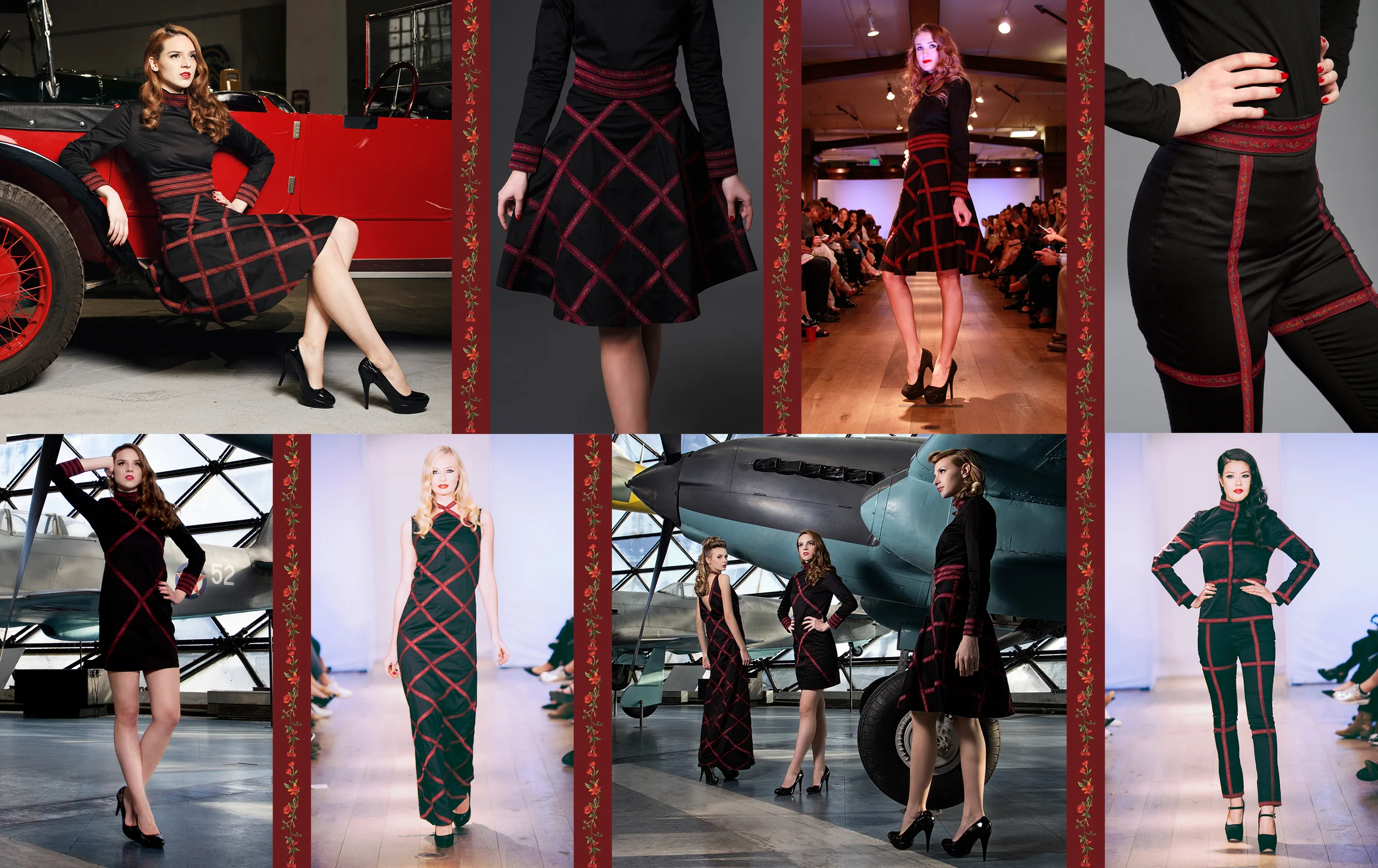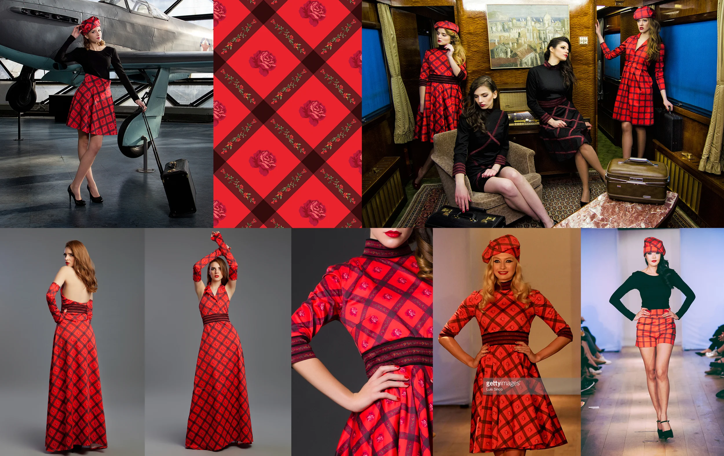 Chic red dresses with stylish Vilorija Scottish check prints and embroideries: